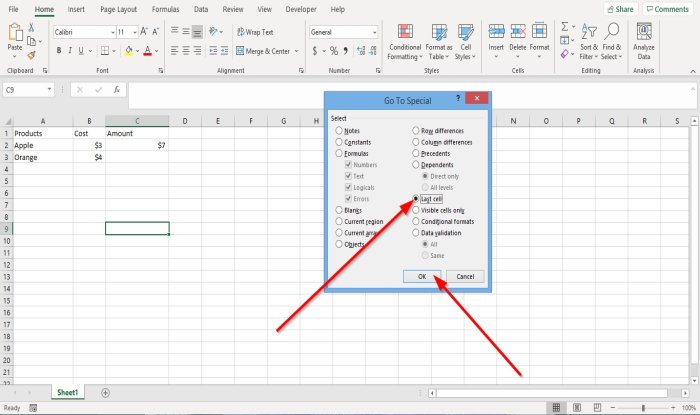 Cách di chuyển ô cư trú cuối cùng trên trang tính trong Excel