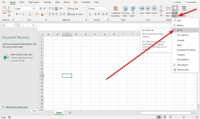 Trong menu Tìm và Chọn(Find and Select) Lối tắt, hãy chọn Đi tới(Go To) .